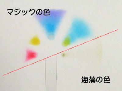 マジックの色と海藻の色をくらべてみよう。 どういう風にちがうかな?