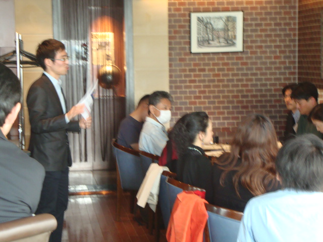 会場は昨年と同じ「ヴァージンカフェ品川」でしたが、昨年の反省から、禁煙スペースを優先的に使用しました。ただし、10時30分開始の連絡が不十分であったため、従業員が出勤してきたのが開始直前となってしまい、参加者の皆さんが自己紹介される間、飲み物が全員に配られるという、慌ただしい雰囲気となってしまいました。