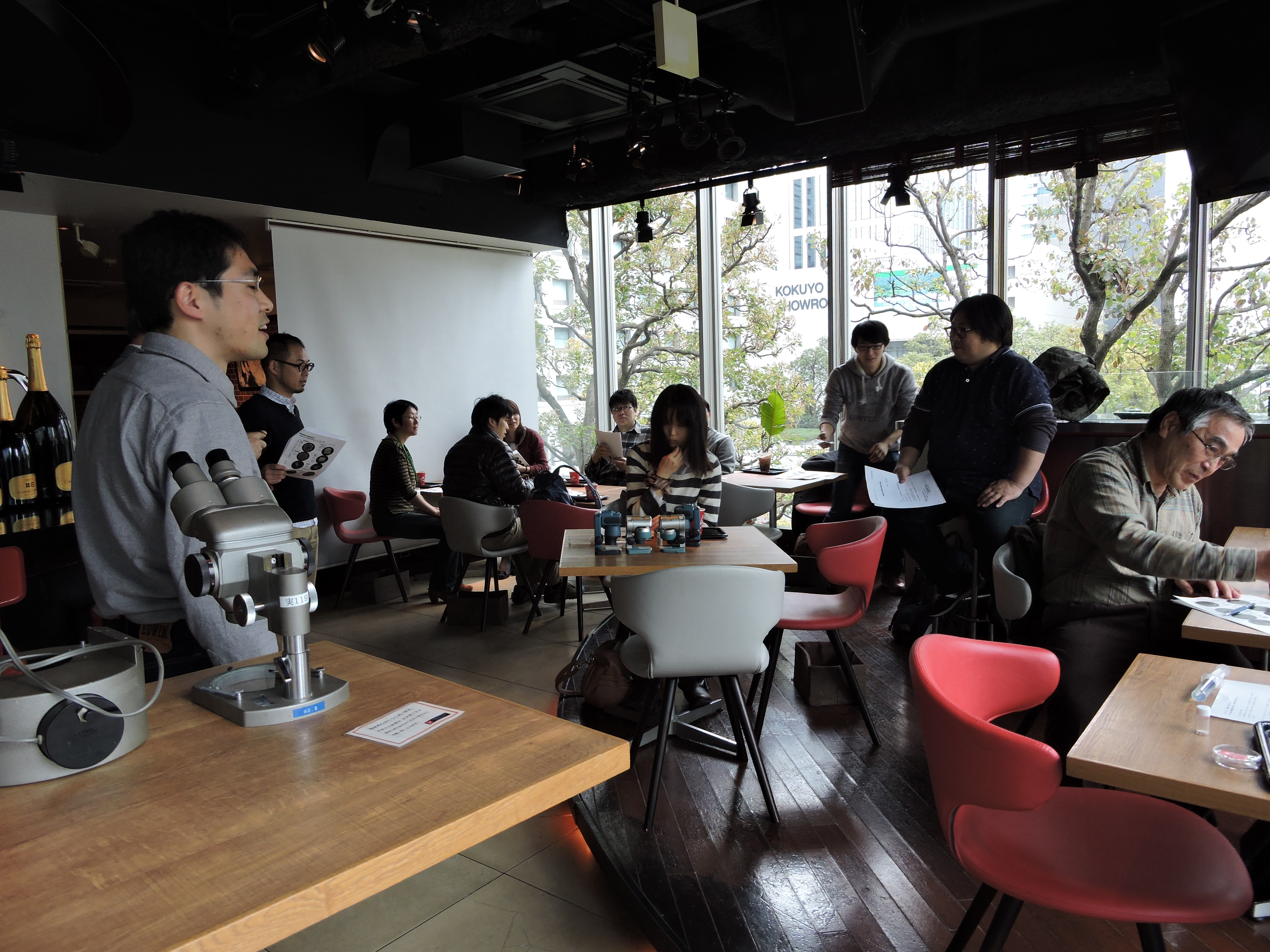 穏やかな春の陽気の中、ヴァージンカフェ品川にて第15回の海のサイエンスカフェが開催されました。今回の話題はJAMSTECの小野寺丈尚太郎さんによる「微化石が語る過去の海」でした。(橋濱史典)
