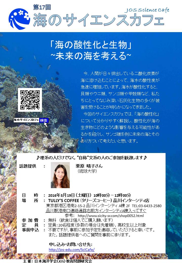 今回のサイエンスカフェでは、「海の酸性化」について分かりやすく解説し、酸性化が海の生き物