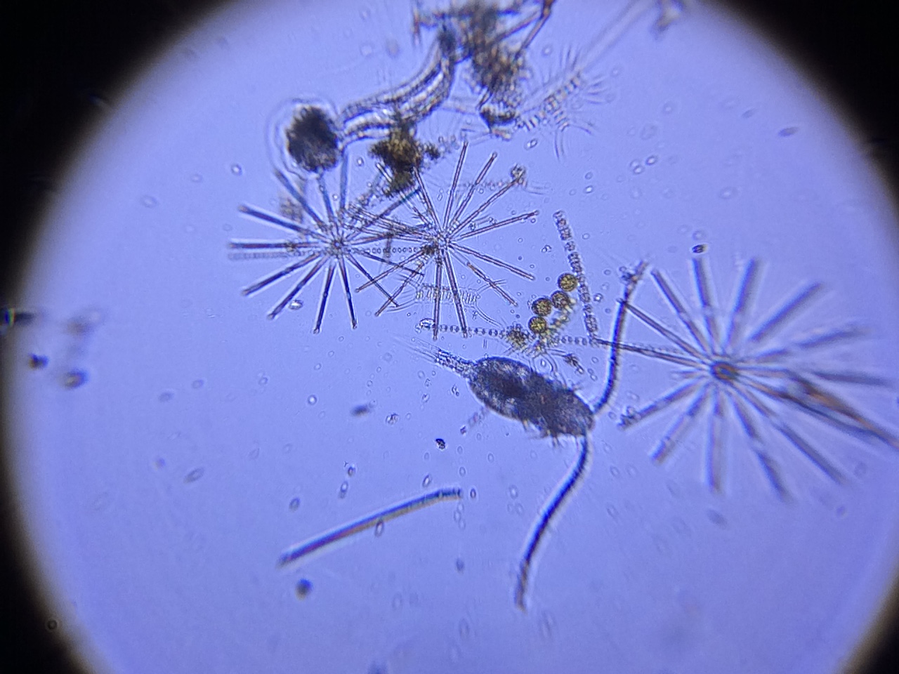 青海北ふ頭公園に今朝までいたプランクトンをスマホ顕微鏡で観察し、撮影します●プランクトンのポストカード作り